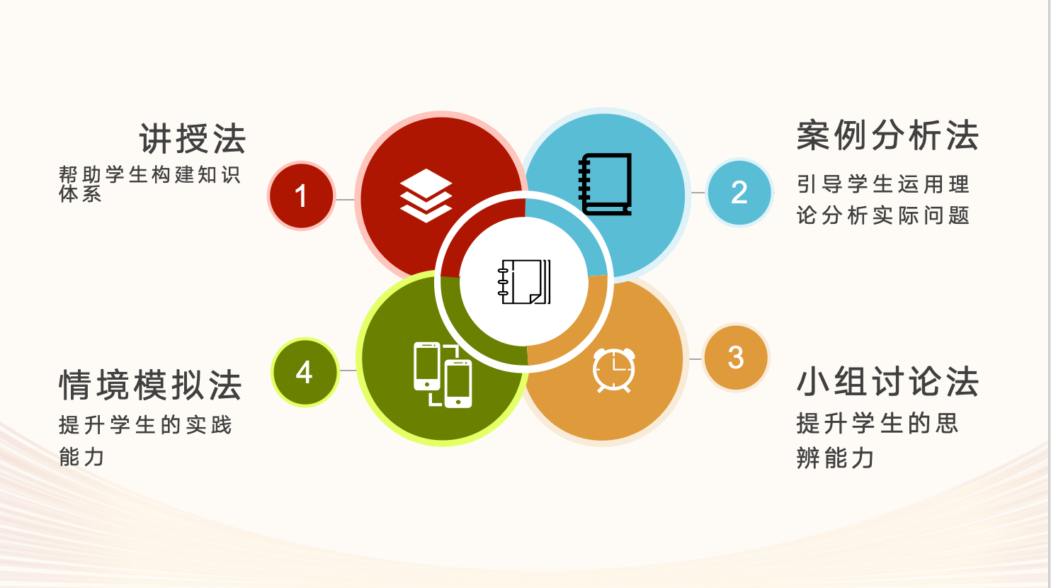 《习近平新时代中国特色社会主义思想概论》课程是一门融思想性、政治性、科学性、理论性、实践性于一体的思想政治理论课,是高校思想政治理论课程中的核心课程。面向全校各专业必修的公共基础课,3学分,48学时。课程是帮助大学生深入领会和理解习近平新时代中国特色社会主义思想的重大意义、丰富内涵、核心要义、精神实质和实践要求的重要渠道。教学团队结合 2023 版教材的体系和架构,以及多年来的教学实践,创新教学方法、丰富教学活动,形成“1334”课程教学体系,即:围绕一条教学主线:当代中国马克思主义、二十一世纪马克思主义;遵循三大教学原则:教师主导和学生主体相结合、理论和实际相结合、讲道理与讲故事相结合;开展三类活动:翻转课堂、经典诵读、社会实践;树立四个自信:道路自信、理论自信、制度自信和文化自信。