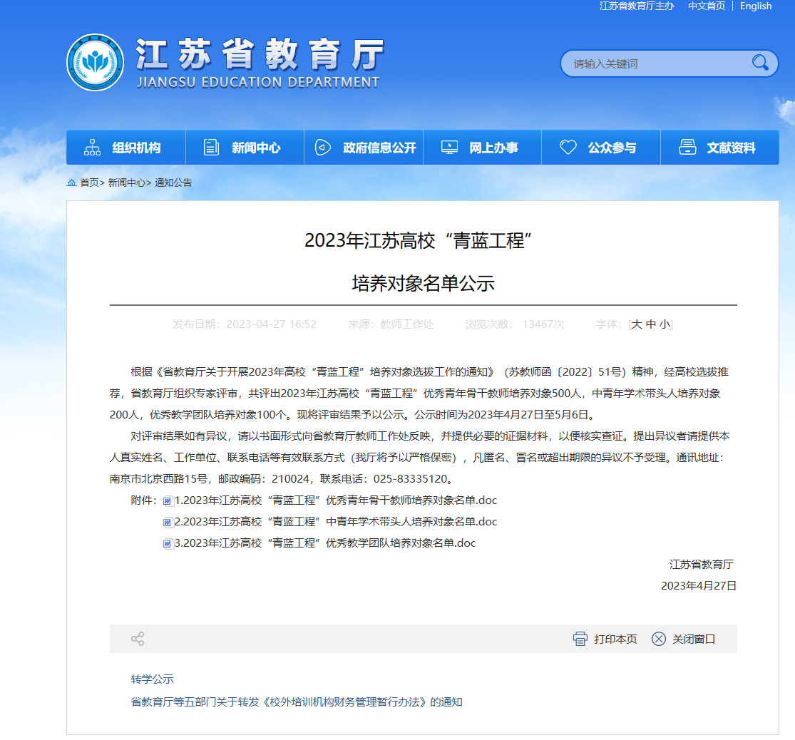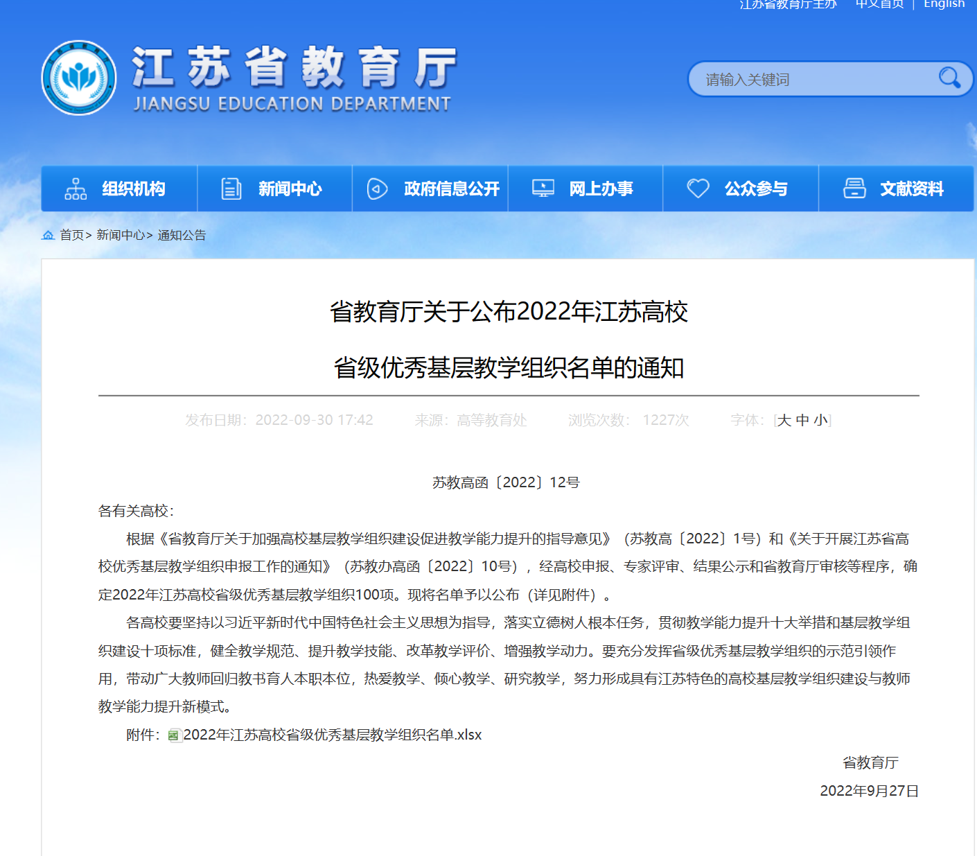 自2002年建课以来,先后获批校精品课程、校课程思政示范课、江苏省一流课程,近4年团队围绕教学改革、资源建设等,立项省级教改项目6项,出版省级重点教材1部,获得省级以上教学奖励16项。团队先后获批省优秀基层教学组织、省“青蓝工程”优秀教学团队。