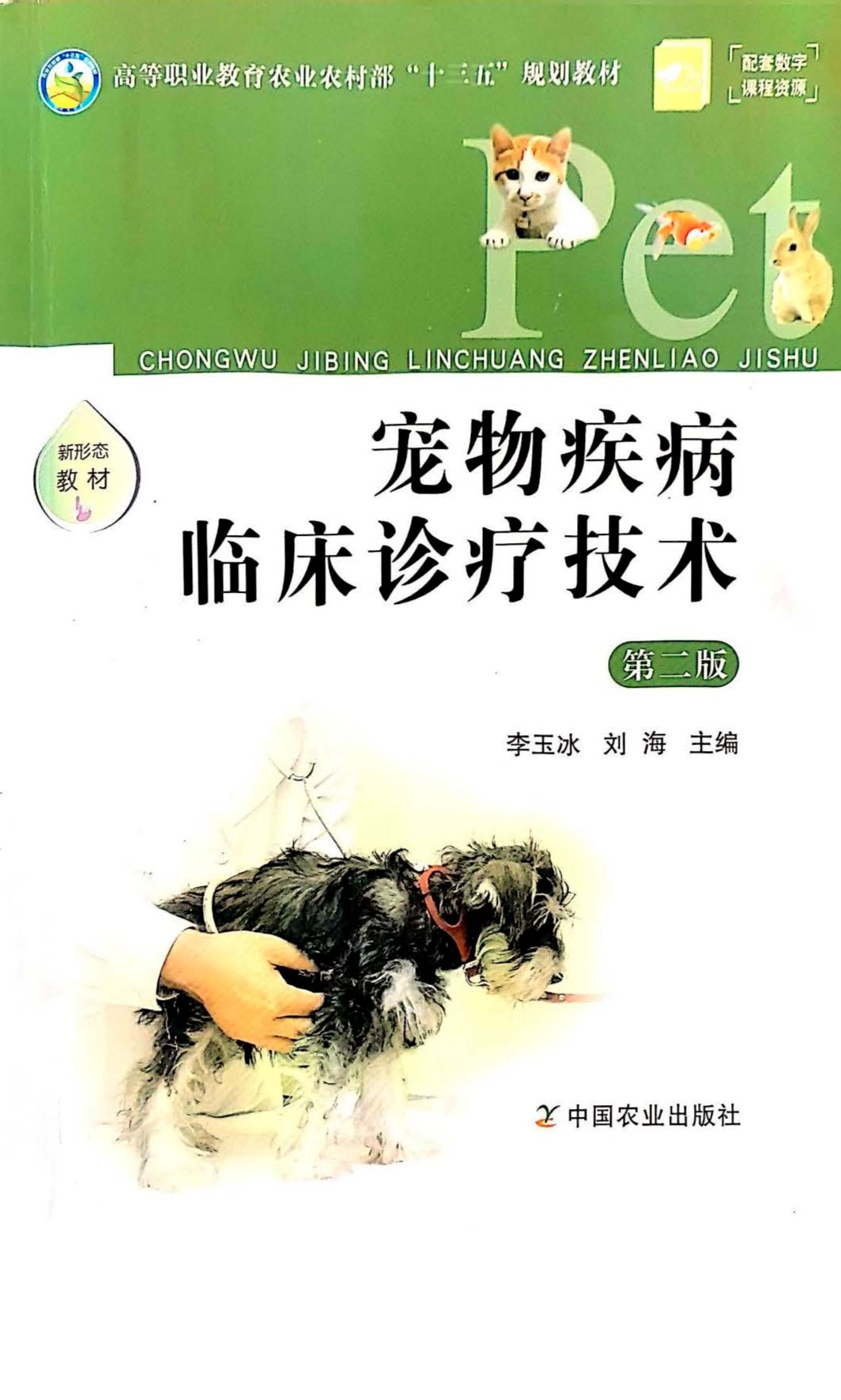 中国农业出版社出版的 高等职业教育农业农村部“十三五”规划教材《宠物疾病临床诊疗技术》,李玉冰主编,ISBN为 9787109225749,出版时间2022年12月  。