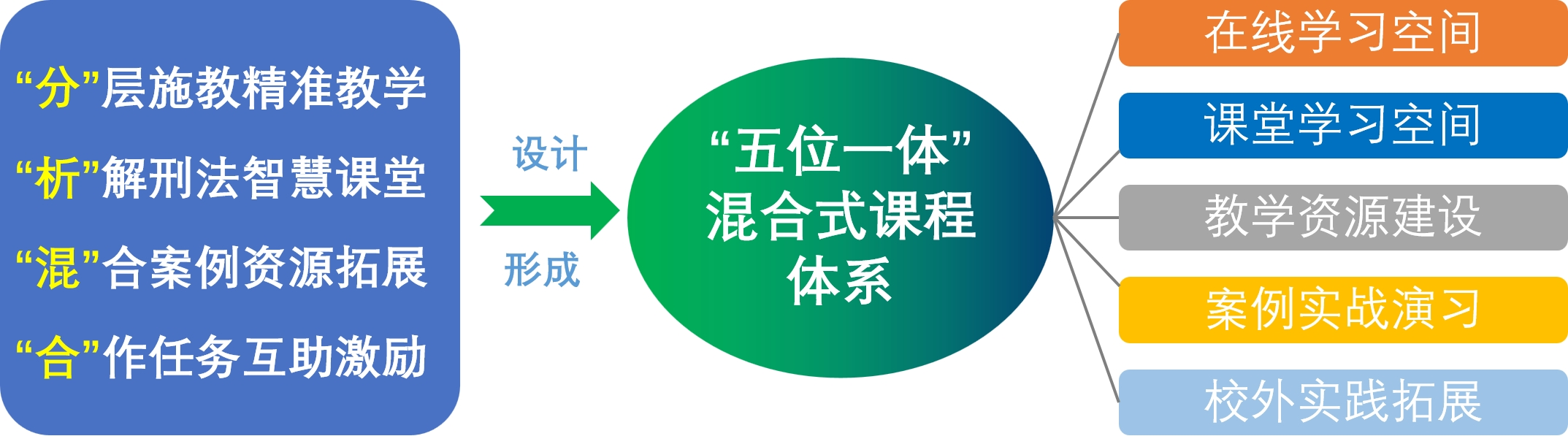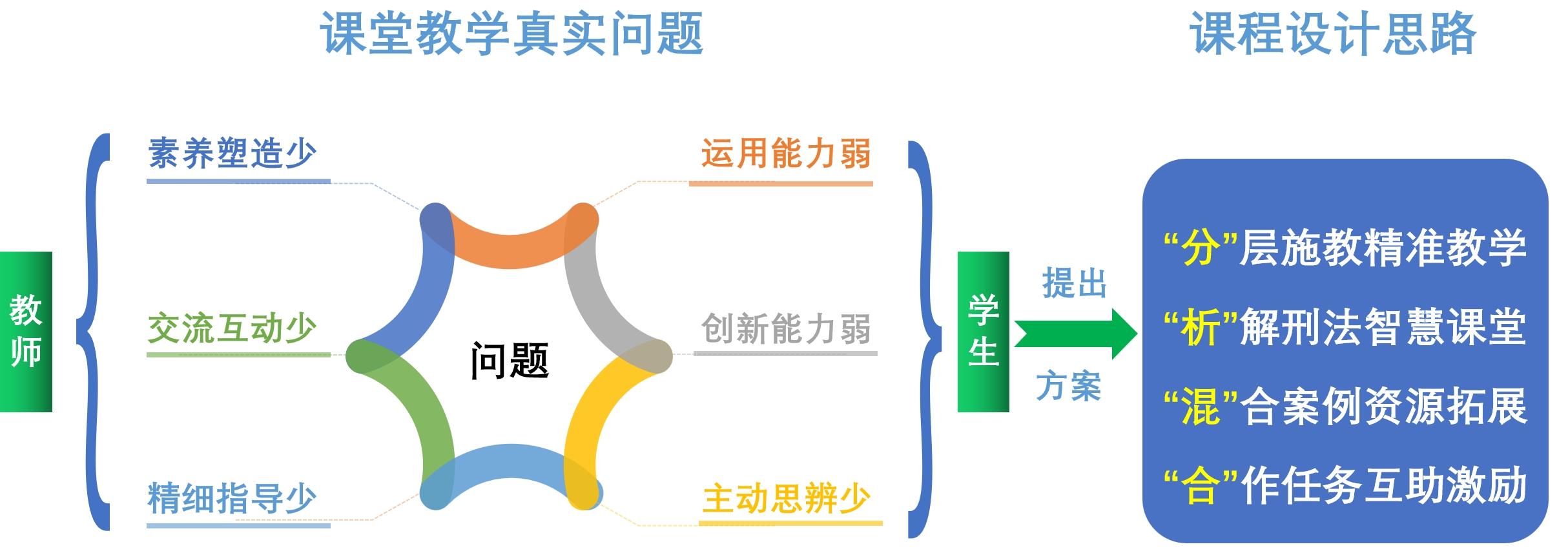 根据刑法学科建设方案及继续教育学生特色,为解决课堂存在的真问题,本课程提出“分”层实施精准教学、“析”解刑法智慧课堂、“混”合典型案例资源拓展、“合”作任务互助激励的课程设计思路。整个教学以问题前导,以任务驱动展开,以思政价值引领贯穿,以多层级路径开展以学生为中心的创新教学实践。