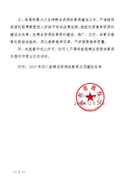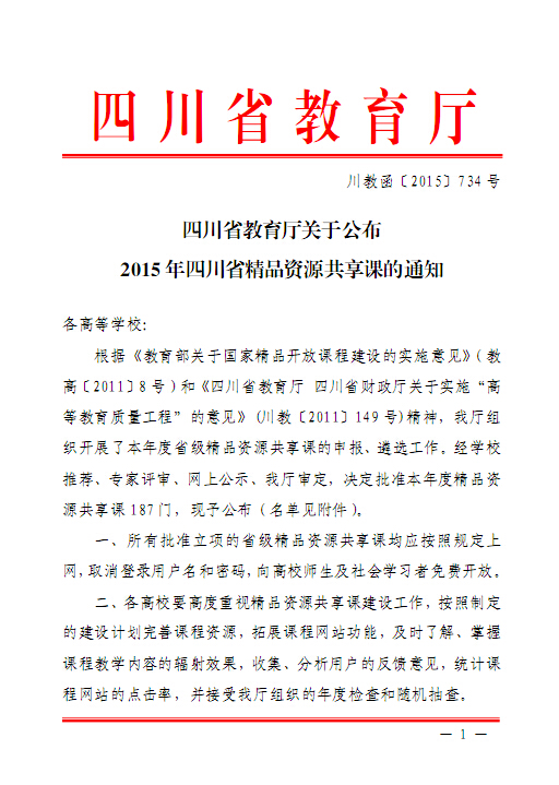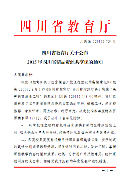 《幼儿活动设计》经四川省教育厅批准确立为2015年省级精品资源共享课程(川教函【2015】734号)