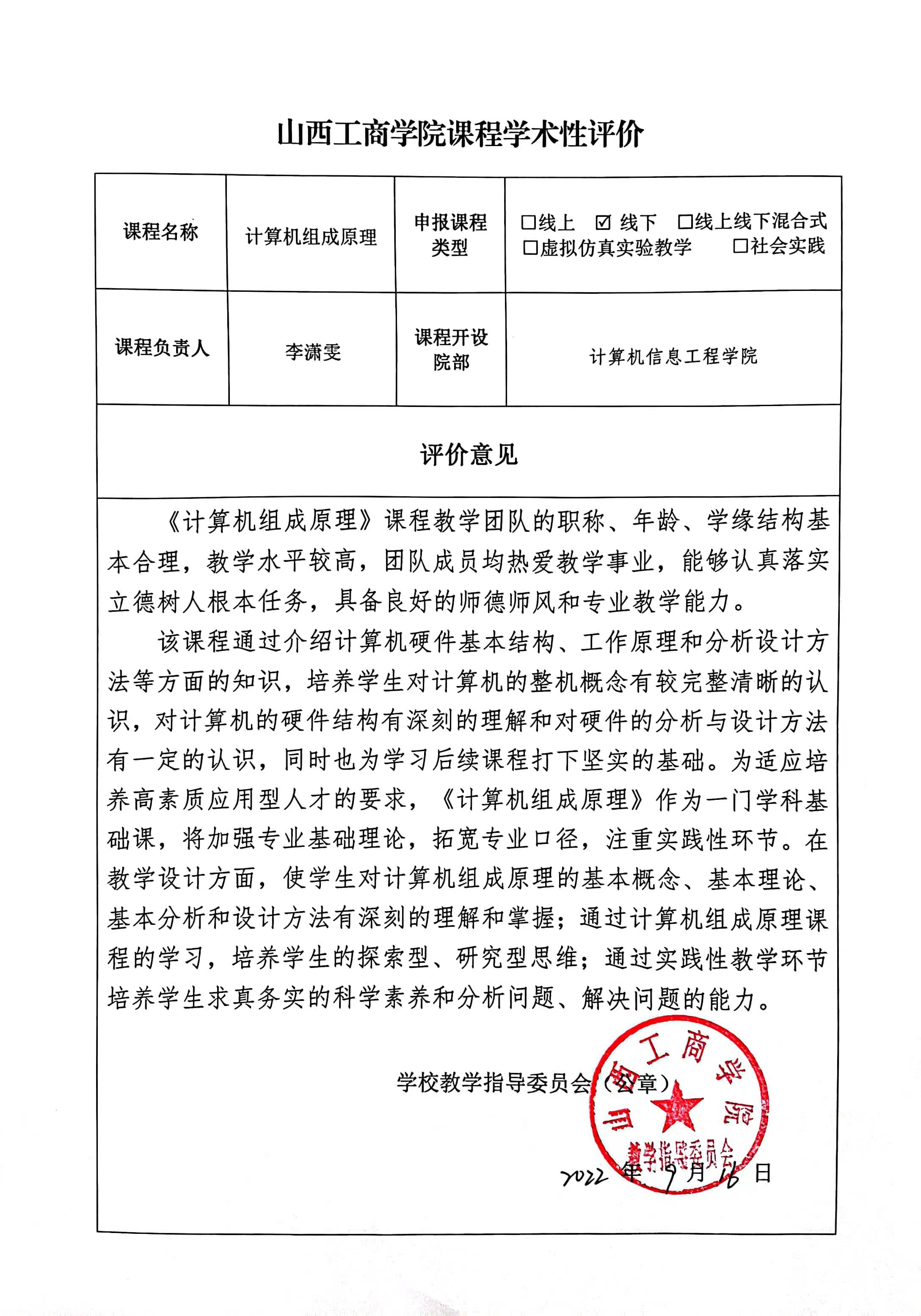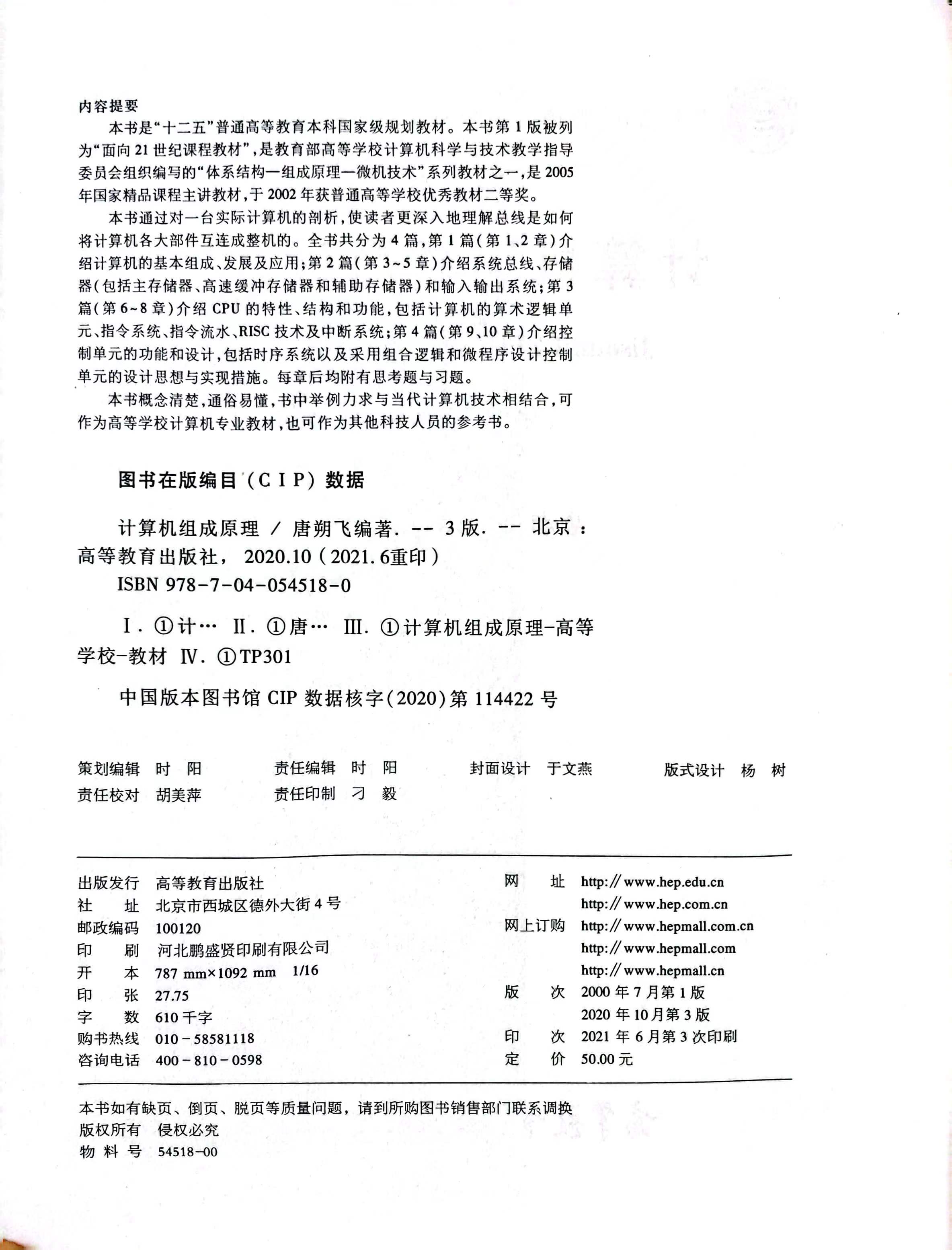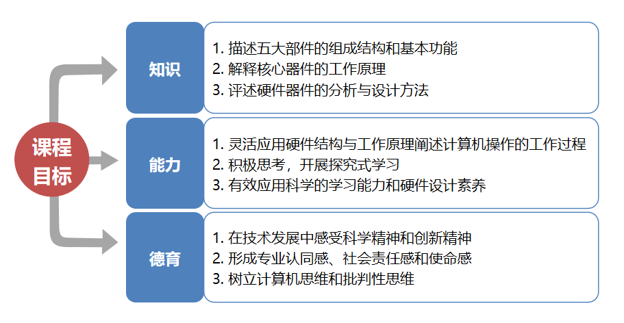 本课程通过介绍计算机硬件基本结构、工作原理和分析设计方法等方面的知识,培养学生对计算机的整机概念有较完整清晰的认识,对计算机的硬件结构有深刻的理解和对硬件的分析与设计方法有一定的认识,同时也为学习后续课程打下坚实的基础。为适应培养高素质应用型人才的要求,《计算机组成原理》作为一门学科基础课,将加强专业基础理论,拓宽专业口径,注重实践性环节。