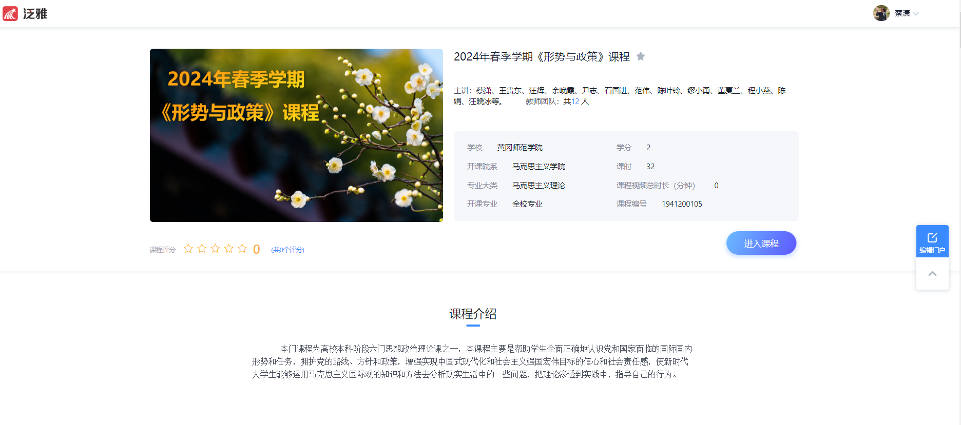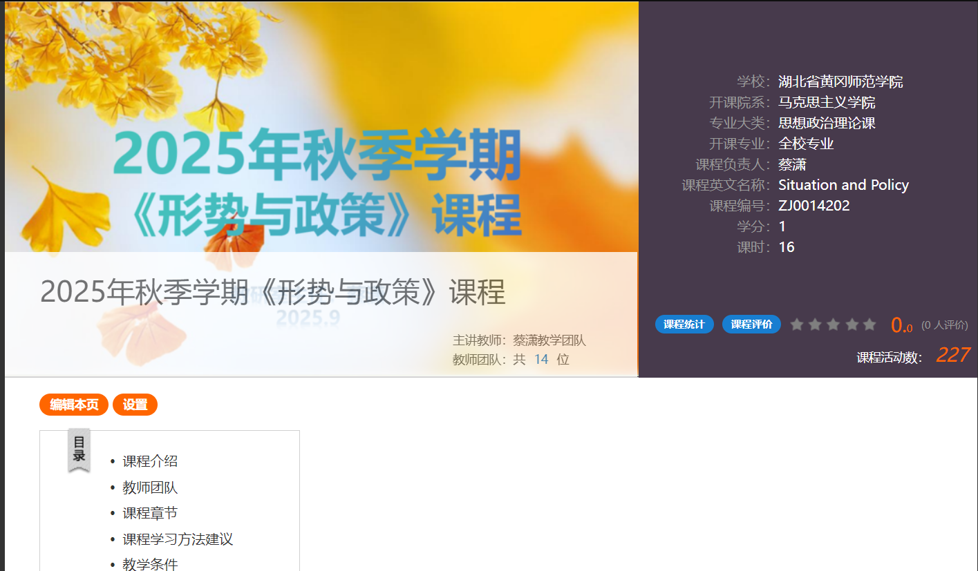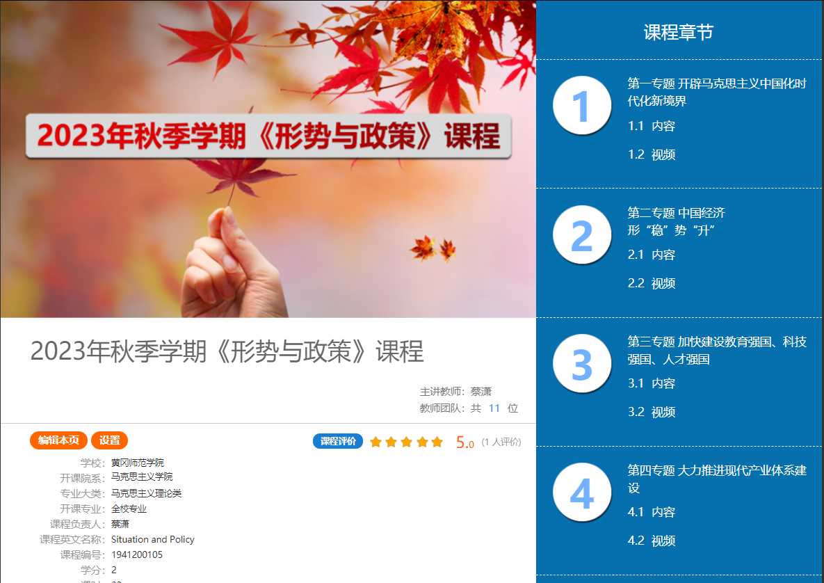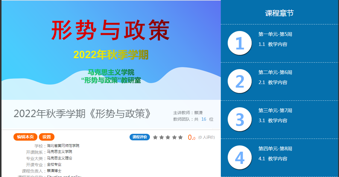 | 课程英文名称: | Situation and Policy |