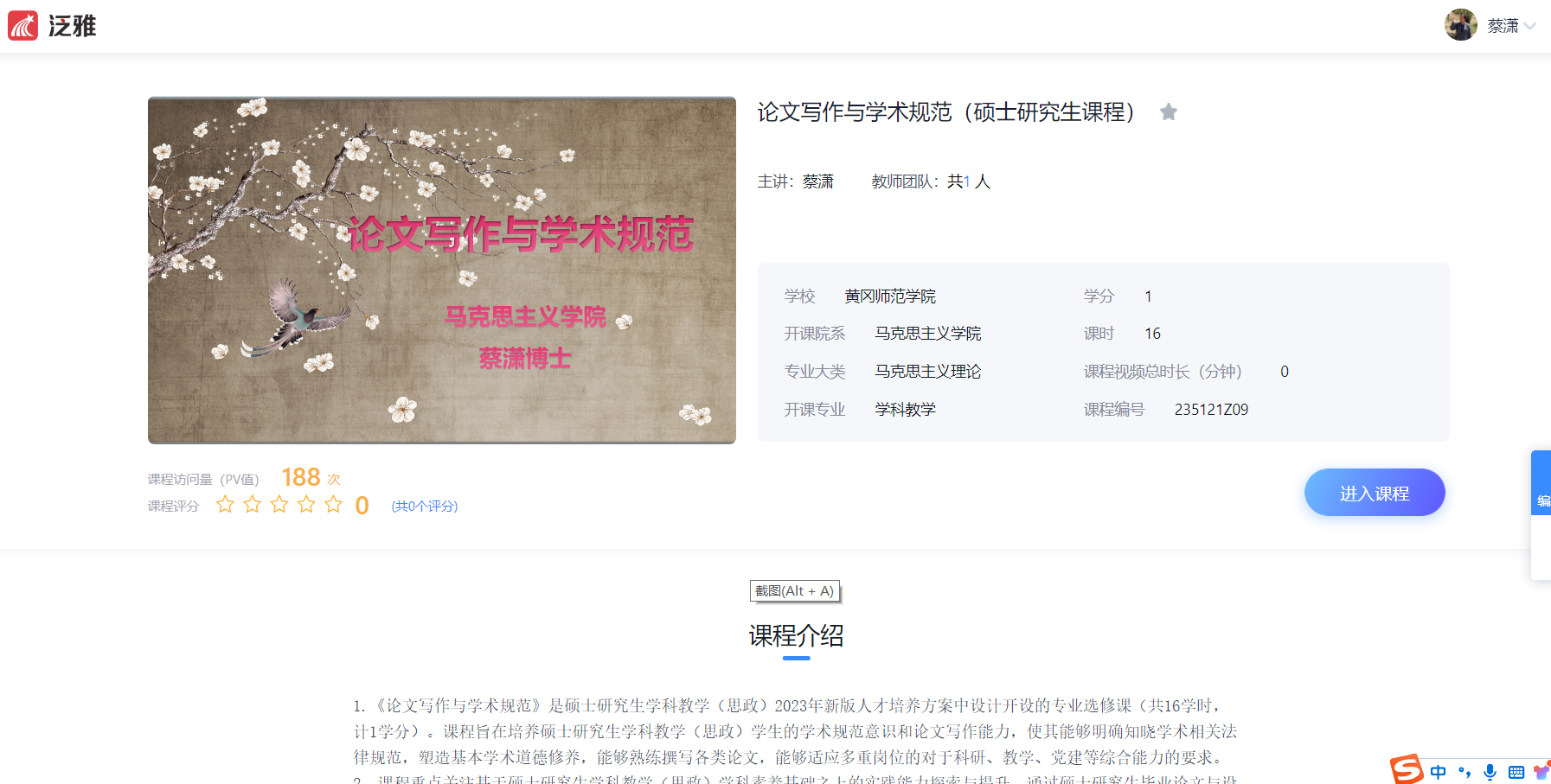 | 课程负责人: | 蔡潇 |