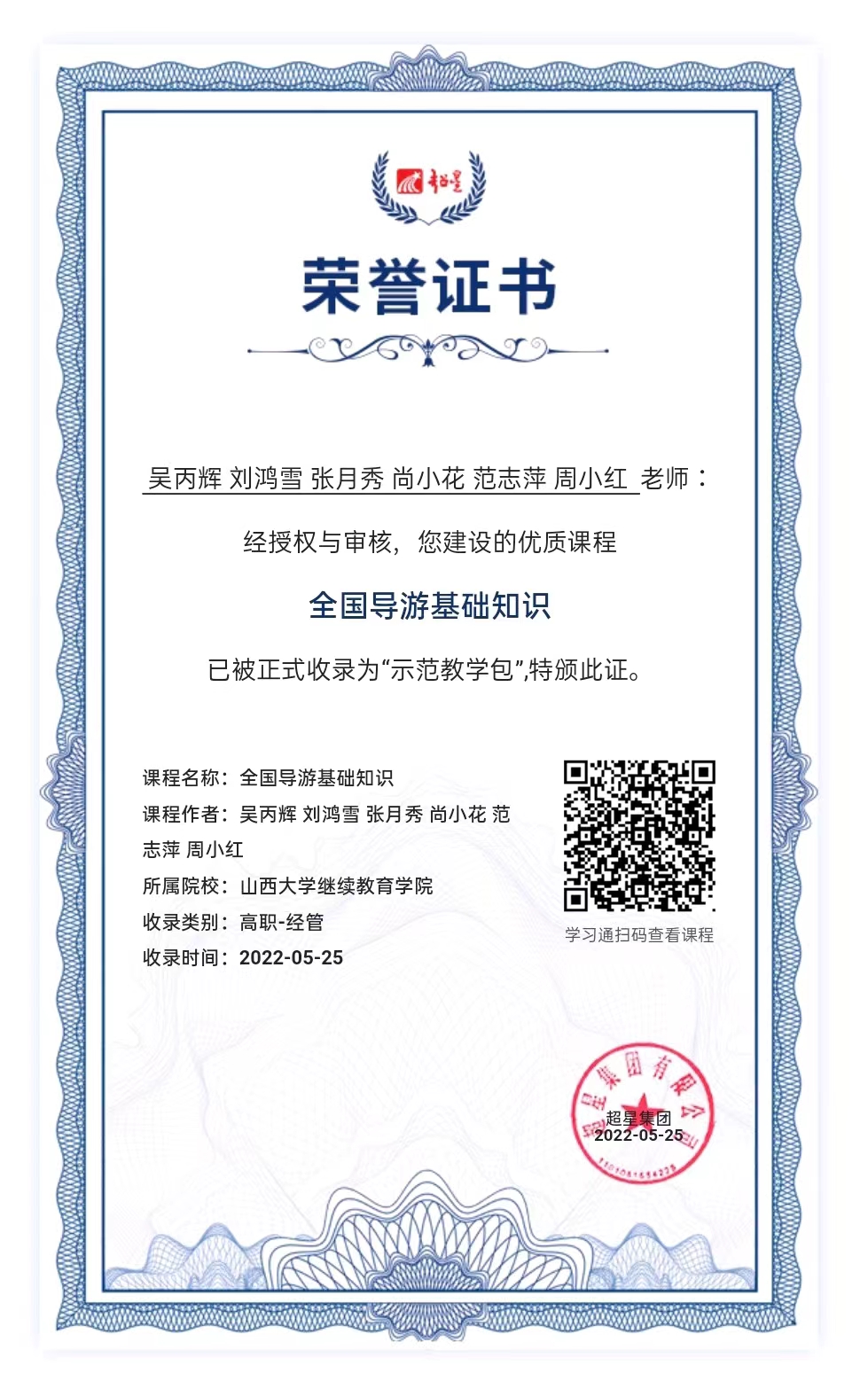 课程超星官方证书