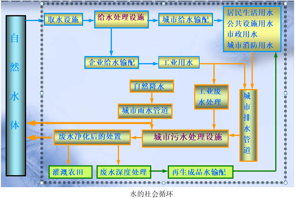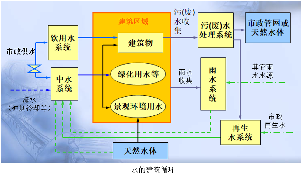 水从开采、净化、输配、供应、使用,到污废水的收集、处理、再利用,形成了水的健康、良性的社会循环。建筑给水排水工程,是研究建筑用水供给和污废水的收集与处置的一门工程学科,以满足生活、生产卫生、安全、舒适的环境。是以建筑物、建筑群或居住小区为对象进行,处于水的社会循环的中间阶段,位于给水工程的终点,排水工程的起点。
