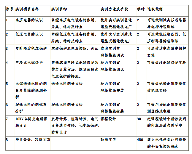 工厂供电课程为理论教学与实践环节教学交互进行的综合性课程,课程采用精品教材,配以教师自行开发的多媒体课件,教学方法灵活多样,采用传统与现代教学方式相结合的等多种教学模式,主要有:车间变电所电气一次部分设计、安装接线图设计、电气设备检修实训,校内变配电所参观实习和顶岗实习、继电保护调试训练、电气一次部分毕业设计等。我院有高压开关柜实训场、低压电气设备实验实训场,还可以在校外实训基地恩施天楼地枕发电厂、公安闸口泵站现场讲授电气主接线及断路器、隔离开关倒闸操作顺序等等,可以满足学生的部分实习和电工类职业技能考证的需要。