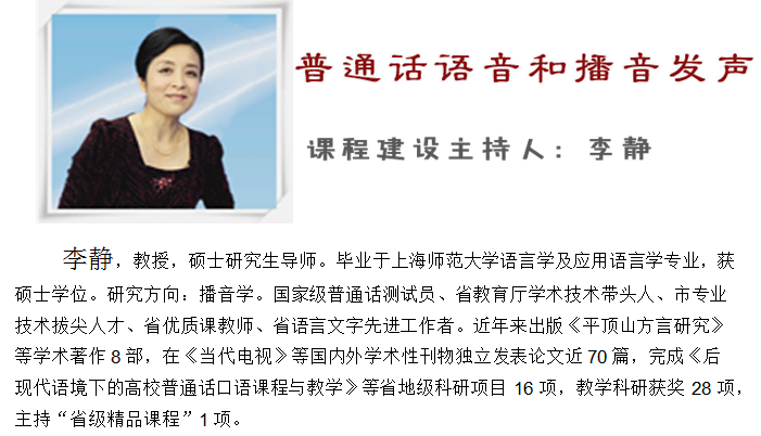 《普通话语音和播音发声》是播音与主持艺术专业的专业基础课程。本课程包括上篇“普通话语音”和下篇“播音发声”。通过理论讲授和有针对性的训练,使学生系统地掌握普通话语音理论知识,熟练规范地运用普通话,系统地掌握播音发声理论知识,逐步掌握并运用科学的发声方法,以适应播音、主持创作的需要。