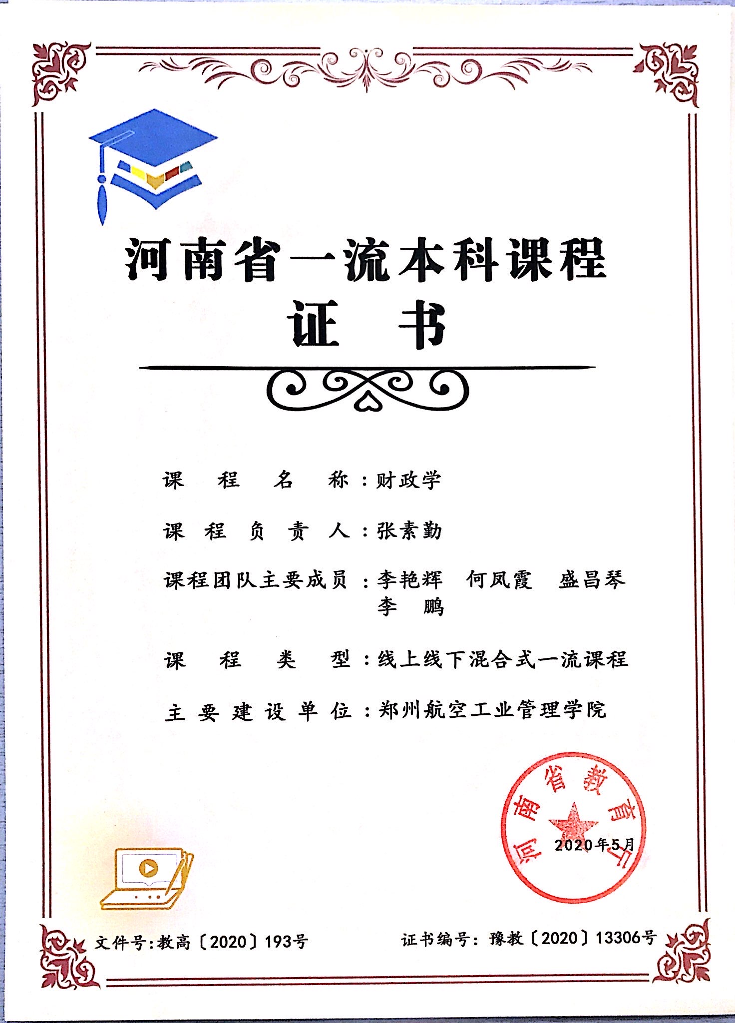 我校的《财政学》课程,是2020年河南省线上线下混合式一流本科课程、2020年河南省本科教育线上教学优秀课程,2023年河南省课程思政样板课程;我校《财政学》课程教学团队是2023年河南省课程思政教学团队。