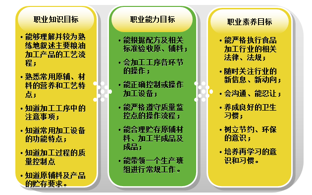 绿色食品生产与检验专业是2003年由北京农业职业学院首先设置并进行建设和制定专业标准,2008年作为国家级高职高专示范专业进行建设,2011年通过国家级示范专业验收,建设了“从田间到餐桌全程质量监控的课程体系”,其中《粮油加工与质量监控》是加工质量监控部分的核心课程。
