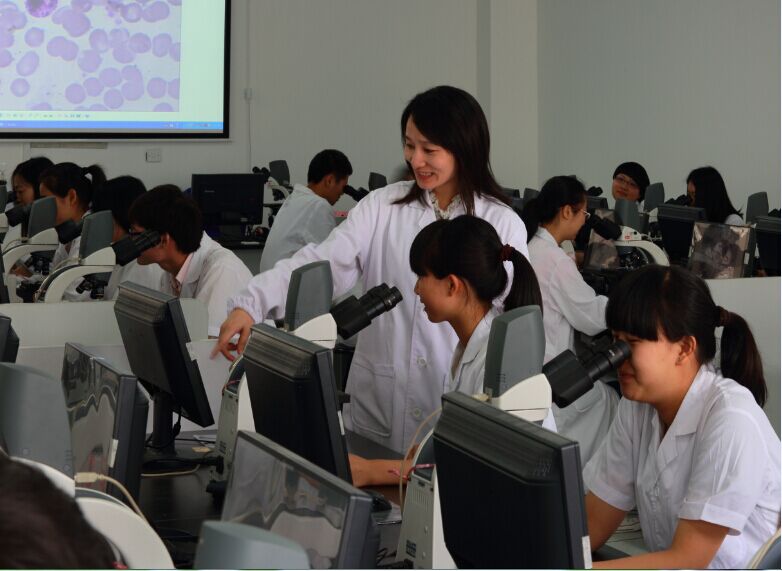 主要仪器设备:显微镜110余台、五人共览显微镜2套、互动显微镜32台学生机,2台教师机,超清晰骨髓细胞分析系统1套,血细胞分析仪半自动和五分类全自动各1套,四通道血凝仪1台。