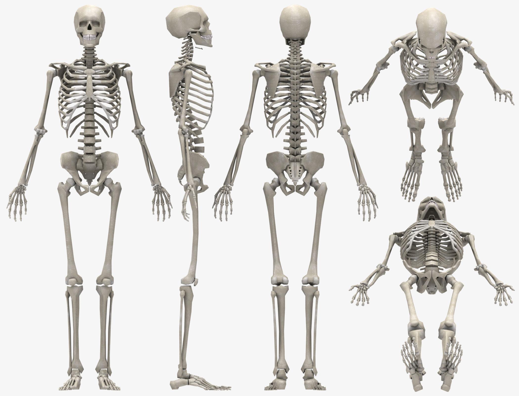 骨骼化是生物结构复杂化的基础,骨骼系统又是生物形态进化的限制因素。骨骼是组成脊椎动物 骨骼内骨骼的坚硬器官,功能是运动、支持和保护身体;制造红血球和白血球;储藏矿物质。骨骼由各种不同的形状组成,有复杂的内在和外在结构,使骨骼在减轻重量的同时能够保持坚硬。骨骼的成分之一是矿物质化的骨骼组织,其内部是坚硬的蜂巢状立体结构;其他组织还包括了骨髓、骨膜、神经、血管和软骨。人体的骨骼起着支撑身体的作用,是人体运动系统的一部分。成人有206块骨,但中国人和日本人的骨头只有204块,因为中国人的第五趾骨只有2节,而欧美人却有3节,所以中国人比欧美人少了2块。骨与骨之间一般用关节和韧带连接起来。除6块听小骨属于感觉器外、按部位可分为颅骨23块,躯干骨51块,四肢骨126块。