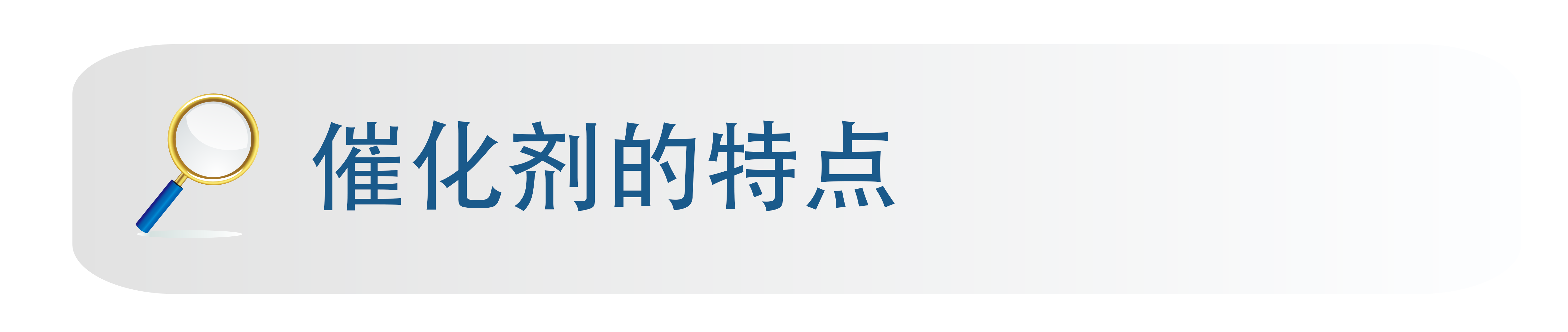 催化剂自身的组成、化学性质和质量在反应前后不发生变化。它和反应体系的关系就像锁与钥匙的关系一样,具有高度的选择性(或专一性)。一种催化剂并非对所有的化学反应都有催化作用,例如二氧化锰在氯酸钾受热分解中起催化作用,加快化学反应速率,但对其他的化学反应就不一定有催化作用。某些化学反应并非只有唯一的催化剂。例如在过氧化氢分解的反应中,二氧化锰、红砖粉末、土豆片、沸石、硫酸铜溶液等都可作催化剂。