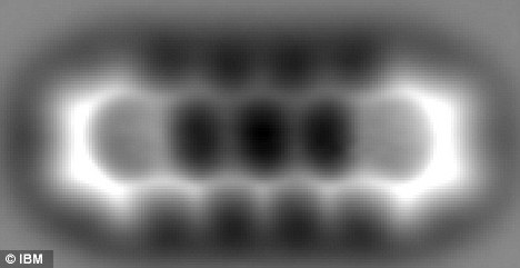 科学家利用原子力显微镜,将单个并五苯分子的照片呈现在人们面前