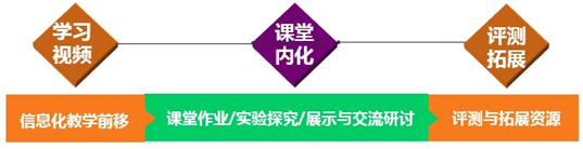 课堂内:内化知识。课堂教学以讨论、练习为主,通过学习探究,协作学习,教师一对一个性化指导,解答学生在学习中遇到的问题,通过分析互动练习题,在线测试,巩固所学知识,完成知识的内化。
