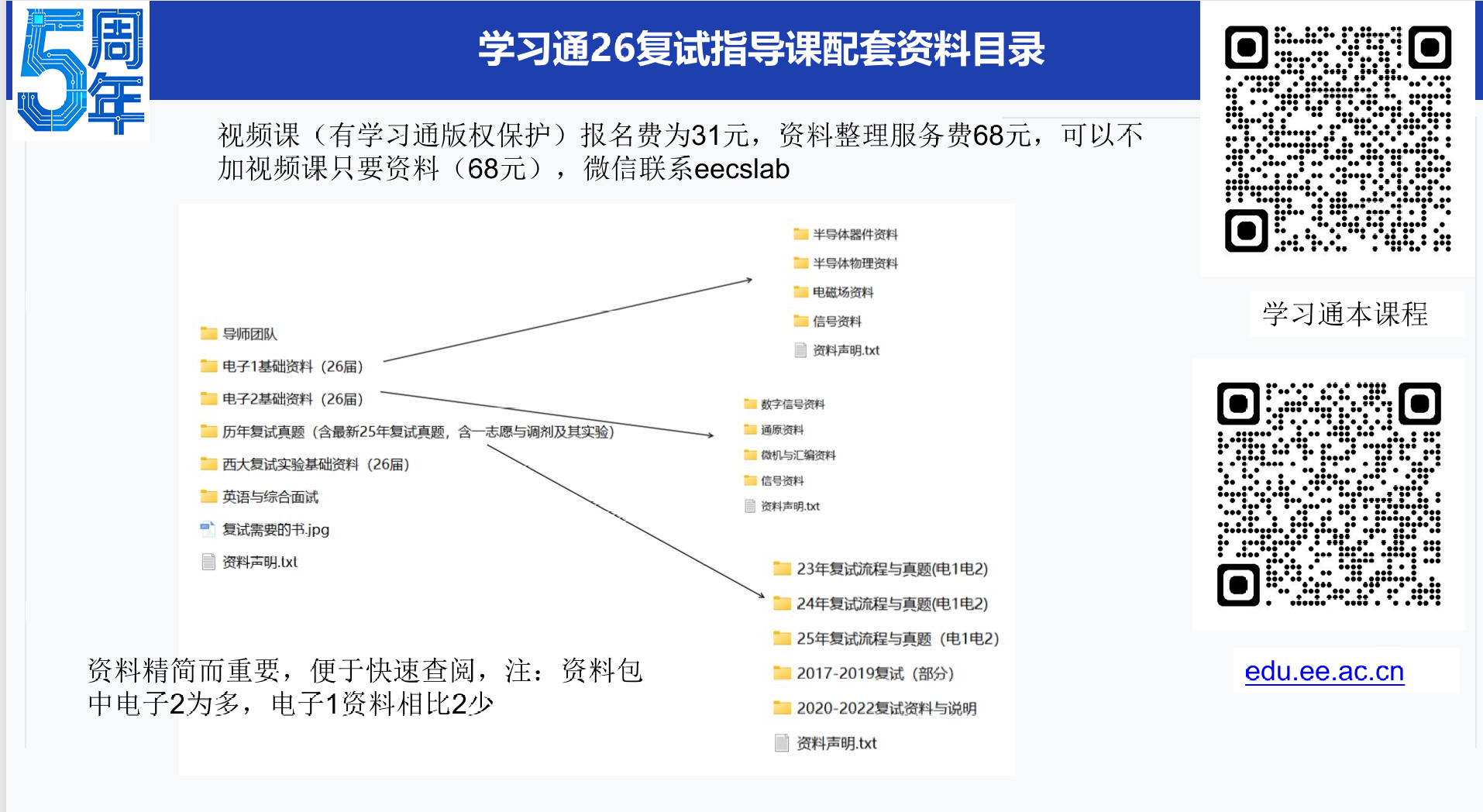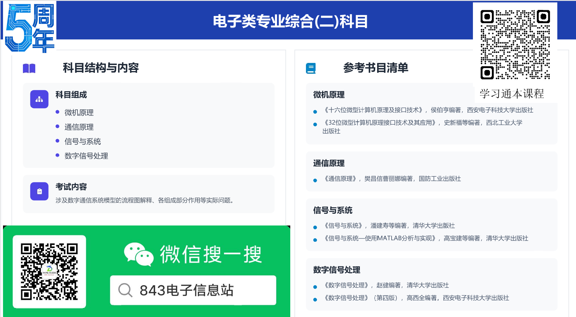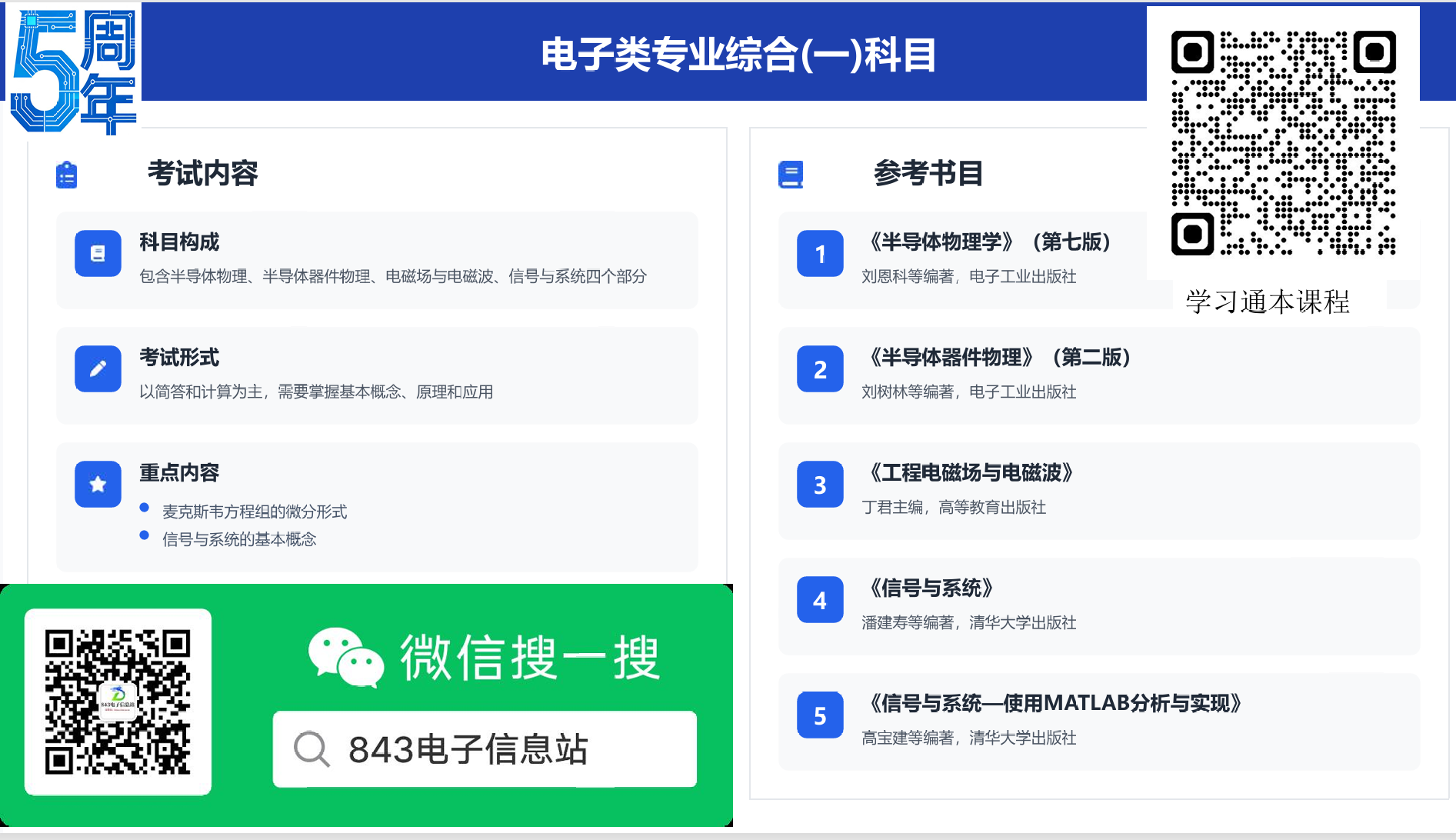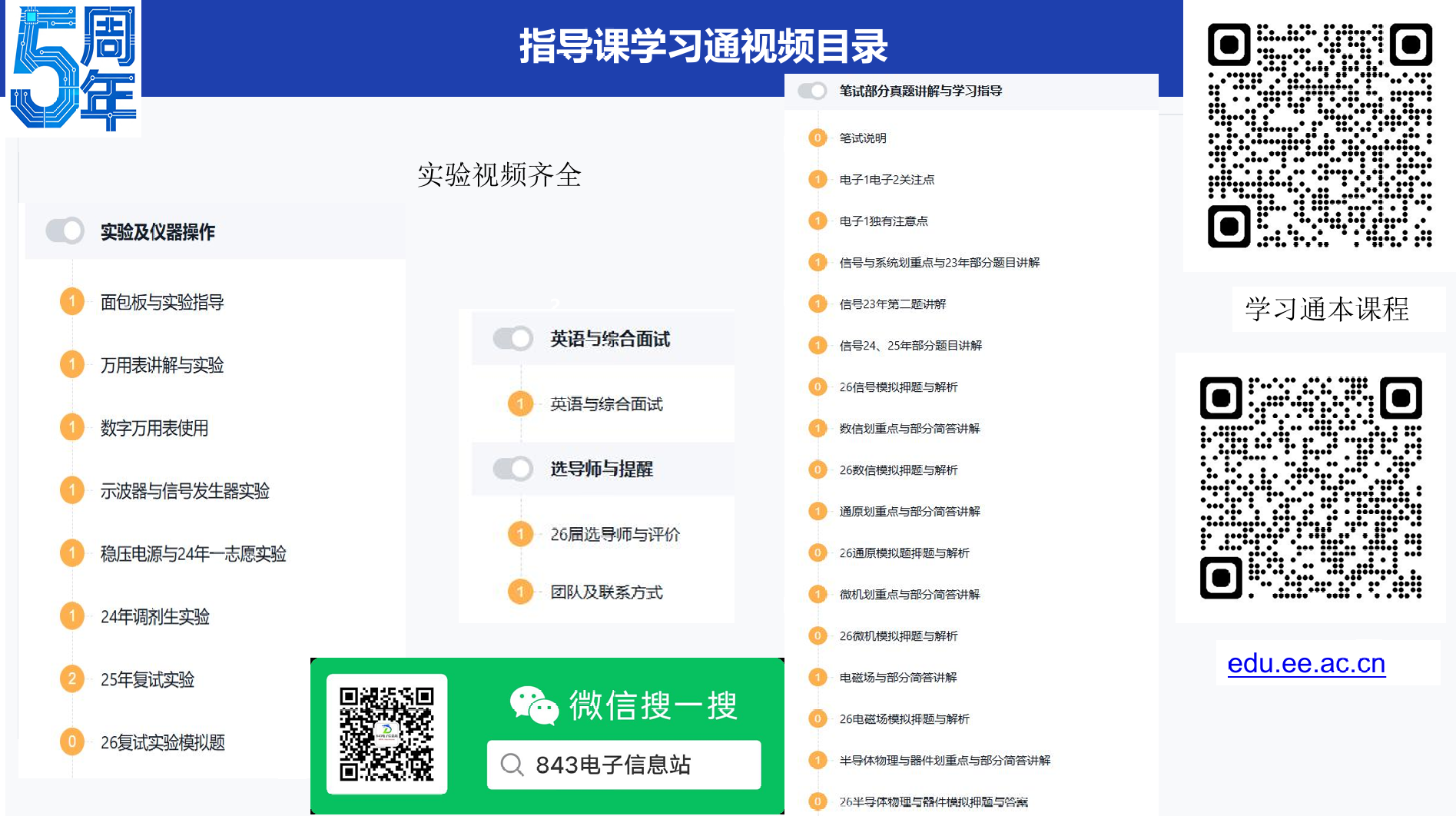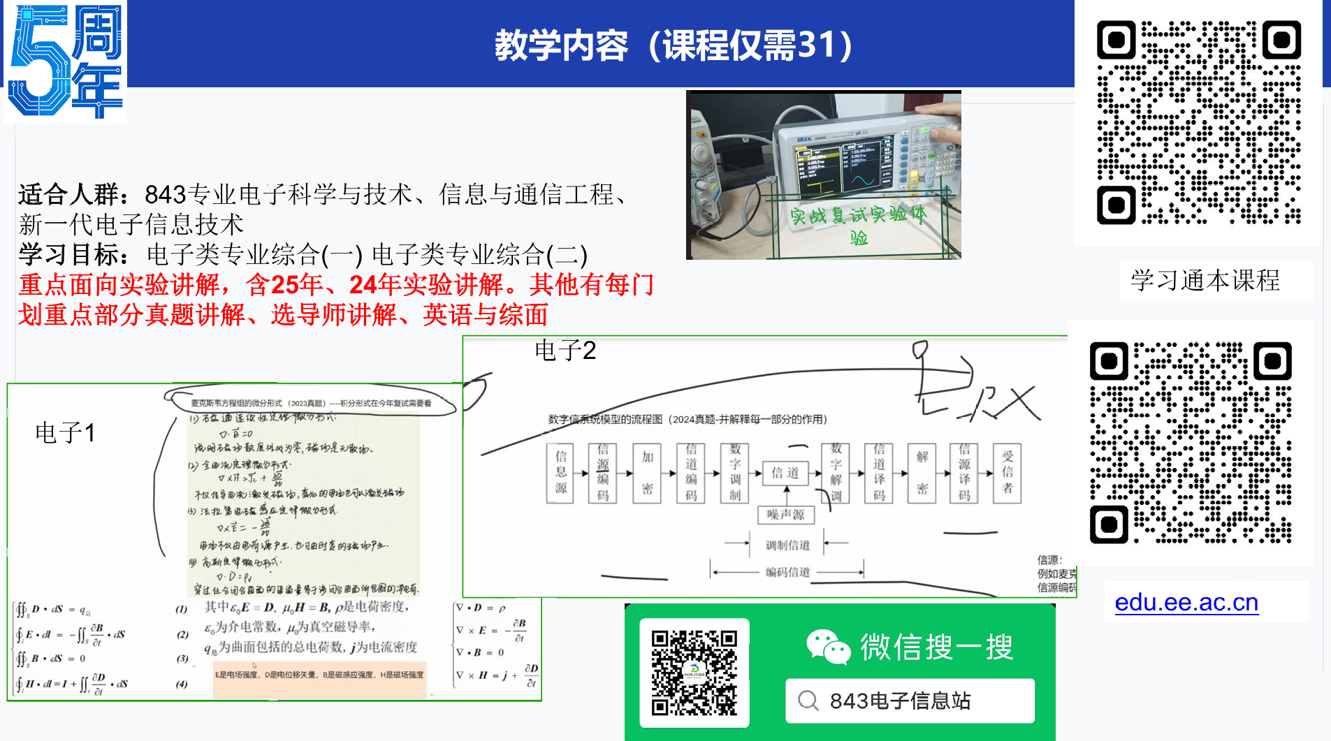 注意本课程为复试指导课:包含内容为实验部分及近年实验讲解,笔试与实验模拟题,每门划重点和部分真题讲解,送近年(含25年)复试真题,该课程价格31元,极具性价比,复试资料服务费68元:含近年复试真题(主要电子2)、笔试概念题资料、实验与综面英语资料等。 适合人群:843专业电子科学与技术、信息与通信工程、新一代电子信息技术 学习目标:一、电子类专业综合(一)二、电子类专业综合(二) 通过本课程点拨与学习,能在复试上从容应对: 半导体物理、半导体器件物理、电磁场与电磁波、信号与系统、微机原理、通信原理、数字信号处理 实战实验仪器讲解,从容应对复试实验 附加事项:方向选择、跨研究方向指导、联系导师指导策略,课程大纲复试点拨、内部资料&课程、英语策略、综合与技能策略。