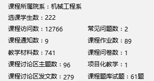 该课程现有选课学生222人,课程总访问数12766,人均访问次数达到57次。微视频37个,课程已布置作业次数89,网络教学材料数为741。网站目前使用良好,有效使用率高,学生反馈较好。