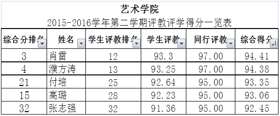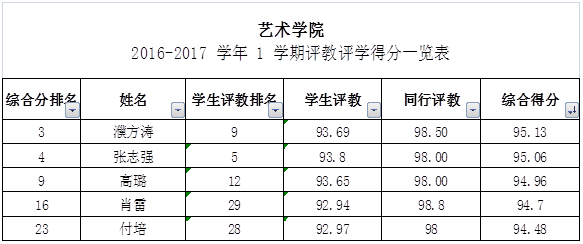 ● 任课教师历年评教评学综合得分一览表,课程组老师的评分都在90分以上。(摘自教务处历年教学信息反馈)