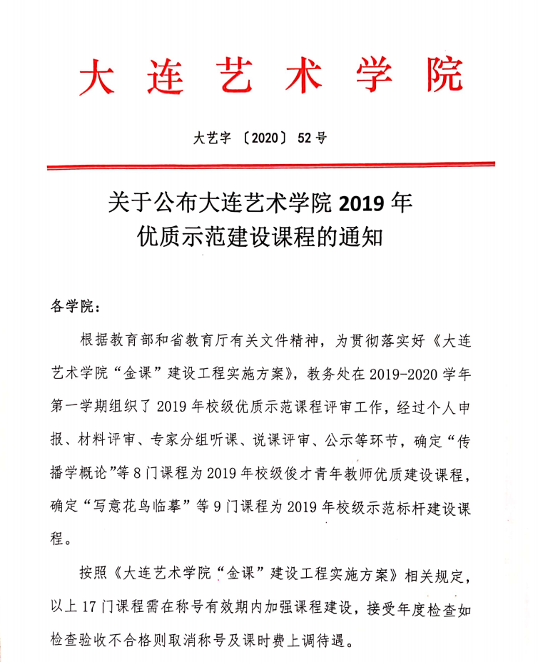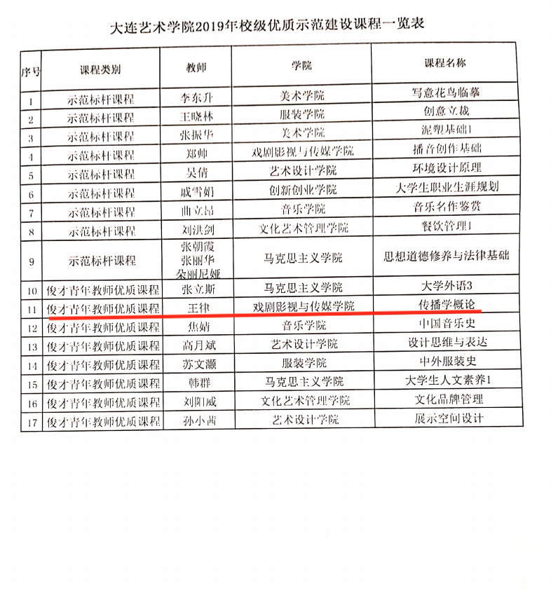 通过本课程学习,使学生对传播学这一新兴学科的总体框架有大致的认识;对传播学的发展脉络有基本的了解,并能够对其中的一些重要问题进行思考。 2020年1月,《传播学概论》课程由辽宁省教育厅推荐到教育部评选2019年国家级一流本科课程(独立);