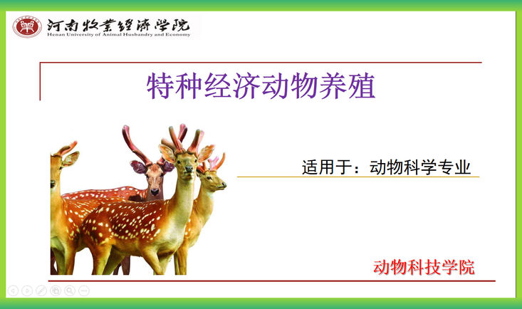 我校《特种经济动物养殖》课程面向于动物科学本科专业开设,共分特种经济动物养殖概论、特种经济动物养殖总论、特种经济动物养殖分论(各论)三大部分,涉及特种经济动物的开发、驯化,以及水貂、狐、貉、茸鹿、麝、蜜蜂等适宜于本区域饲养,用途广、经济效益高的特种经济动物,内容包括动物的生物学特性、经济学特性、繁殖育种技术、营养与饲料配制、饲养管理、产品初加工技术等。| 课程章节 | | 文件类型 | | 修改时间 | | 大小 | | 备注 | |