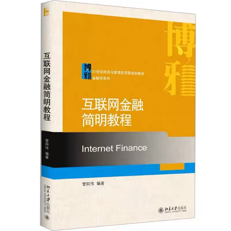 1.本课程选用本学院金融学科带头人管同伟教授主编并出版的教材《互联网金融简明教程》(ISBN 978-7-301-28726-2),本书定位于应用型本科教学需要,共分三篇:一篇为概述,介绍互联网金融概念的基本内涵与外延及其发展状况;第二篇为互联网金融模式,包含第三方支付、P2P网贷、股权众筹等互联网企业的互联网金融模式,以及互联网银行、互联网证券、互联网基金销售、互联网保险等金融机构的互联网变革模式,具体包括每类模式构成要素、交易流程和交易规则的描述与分析;第三篇为互联网金融风险与控制,介绍互联网金融总体风险特征及其行业风险管理与金融监管。
