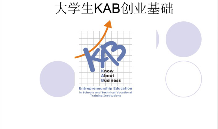 《大学生KAB创业基础》课程是KAB创业教育(中国)项目的成果之一,该课程力图对中国当代大学生的创业观念进行科学指导,培养他们的创业意识,帮助他们正确认识企业在社会中的作用,了解创办和经营企业的基本知识和实践技能,从而提升他们的创业能力以及就业能力。