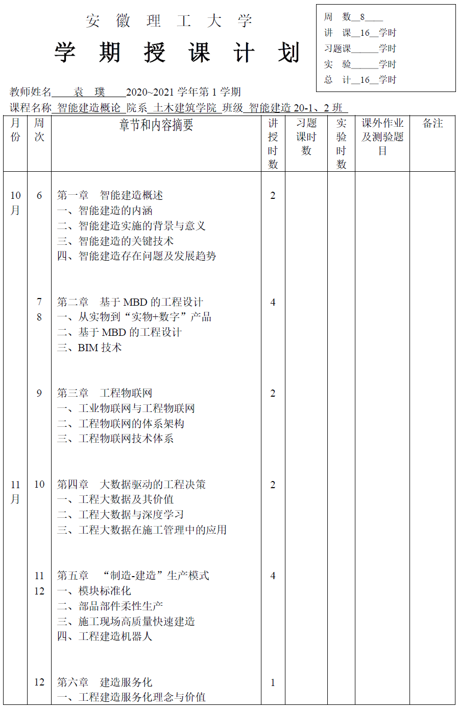 | 课程英文名称: | Introduction to Intelligent Construction |