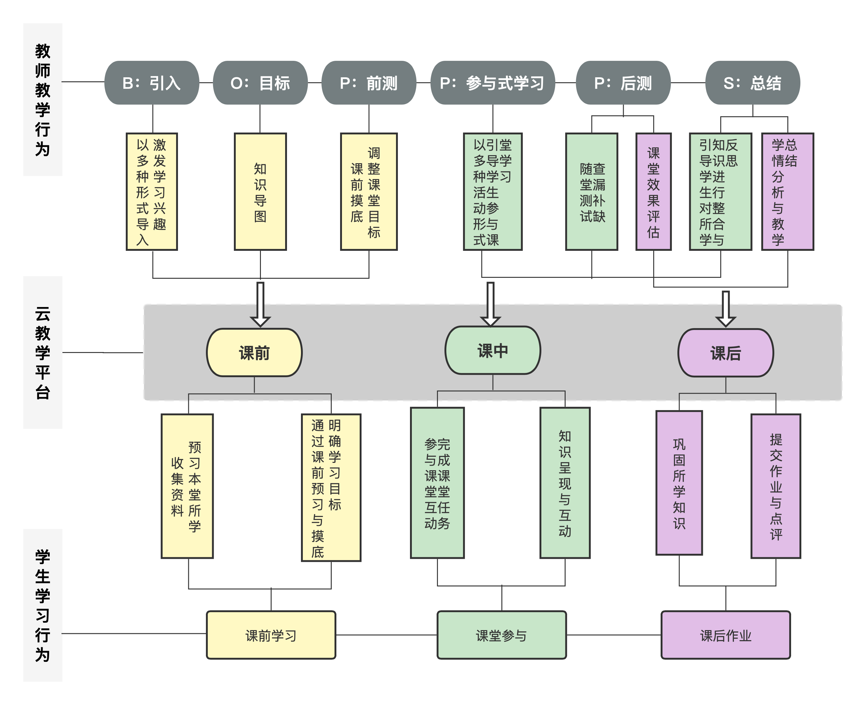 本课的课程目标以全面贯彻党的教育方针,落实立德树人为根本目标,为进一步激发学生英语学习的兴趣,帮助学生掌握基础知识和技能,结合《2020中等职业学校课程标准》及本校学生发展特色,为学生个人品质、职业生涯、自主发展和社会发展的全面发展奠定基础。基于翻转课堂和BOPPPS教学模式二者核心理念的适契性和教学特点的互补性,我们将翻转课堂理念融入BOPPPS教学模式以达到教学目标、完成教学过程。具体教学过程如下图所示: