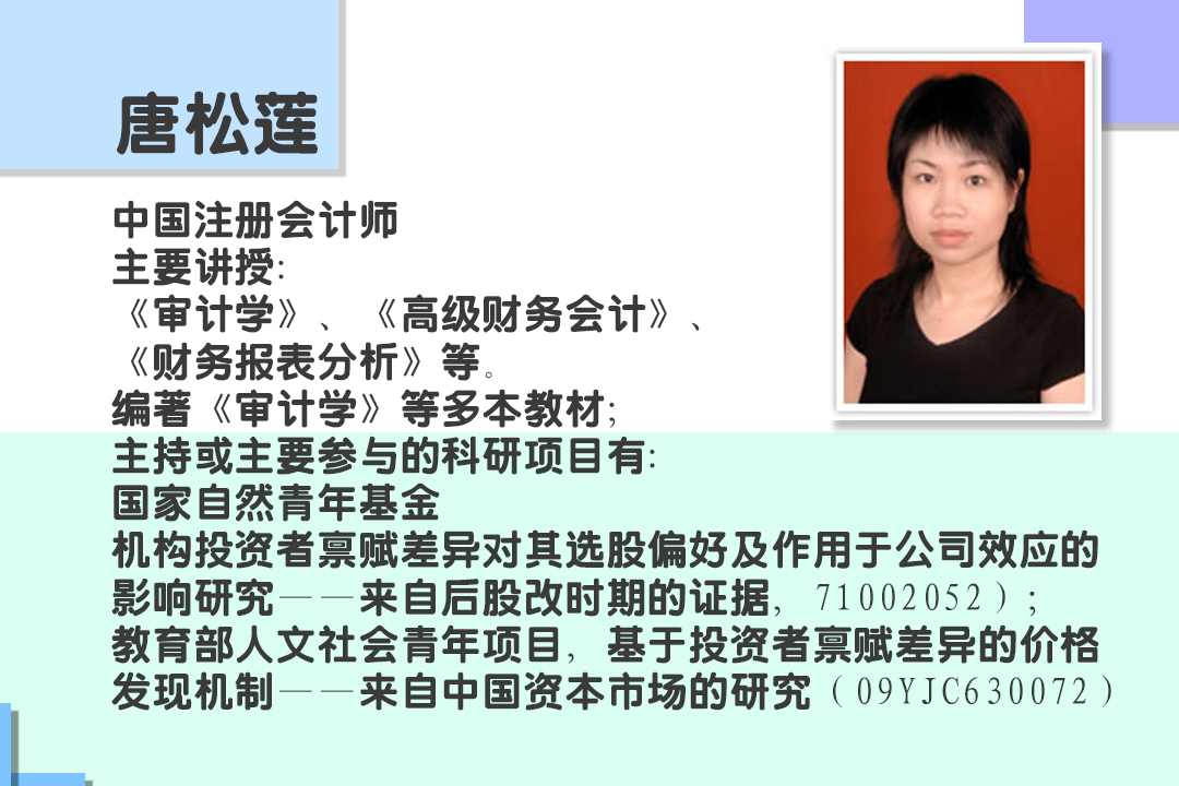 作者简介:陈汉文,经济学博士,教授,博士生导师,厦门大学会计系主任。2000—2001年作为中一加政府交换学者在Saint Mary' s University和University Of Waterloo做学术访问,人选教育部“新世纪优秀人才支持计划”。独立主持完成国家自然科学基金项目、国家社会科学基金项目和教育部人文社会科学重点研究基地重大项目。在《经济研究》、《管理世界》、《会计研究》、《审计研究》等一类核心期刊发表论文26篇,撰写《注册会计师职业行为准则研究》等著作,获得中国会计学会和中国审计学会优秀论文一等奖、首届杨纪琬奖学金指导教师奖等。兼任《中国经济问题》编委、《审计研究》编委、《财会通讯》编委、《会计之友》编委、财政部会计准则委员会咨询专家、国家审计署商业银行审计指南评审专家、中国会计学会财务成本分会副会长、福建省内部审计协会副会长、中国审计学会常务理事等。