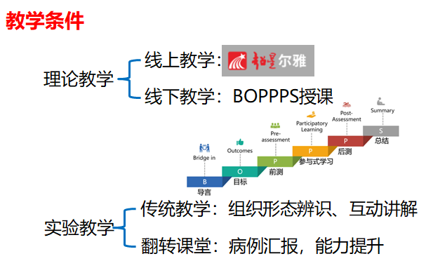 依据授课内容,选择部分章节,开展线上自主学习,在完成任务后,通过线下BOPPPS授课,检查学生线上自主学习效果。通过设置问题,引导学生运用所学专业知识解释现象、解决简单的临床问题,提升能力。