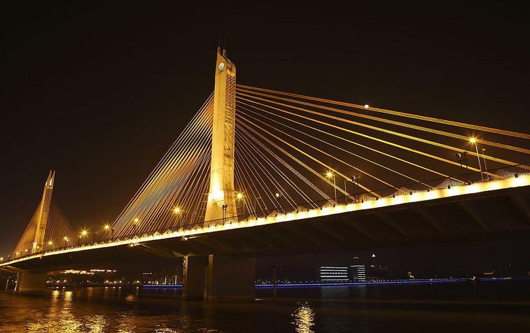 拉索桥:有系到桥柱的钢缆。钢缆支撑桥面的重量,并将重量转移到桥柱上,使桥柱承受巨大的压力。