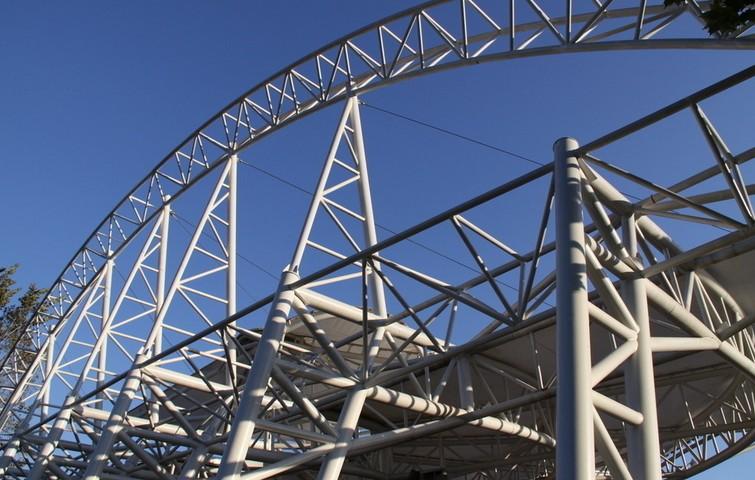拱桥: 在竖向荷载作用下,两端支承处产生竖向反力和水平推力,正是水平推力大大减小了跨中弯矩,使跨越能力增大。理论推算,混凝土拱极限跨度在500m左右,钢拱可达1200m。亦正是这个推力,修建拱桥时需要良好的地质条件。