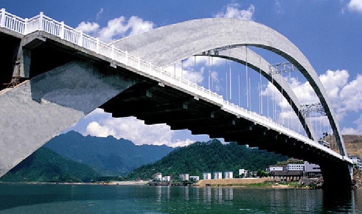 拱桥:借拱形的桥身向桥两端的地面推压而承受主跨度的应力。现代的拱桥通常采用轻巧、开敞式的结构。