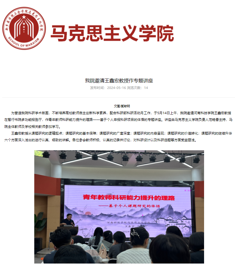 6.王鑫宏:河南科技学院马克思主义学院青年教师创新大赛特等奖,2020年9月,河南科技学院马克思主义学院。