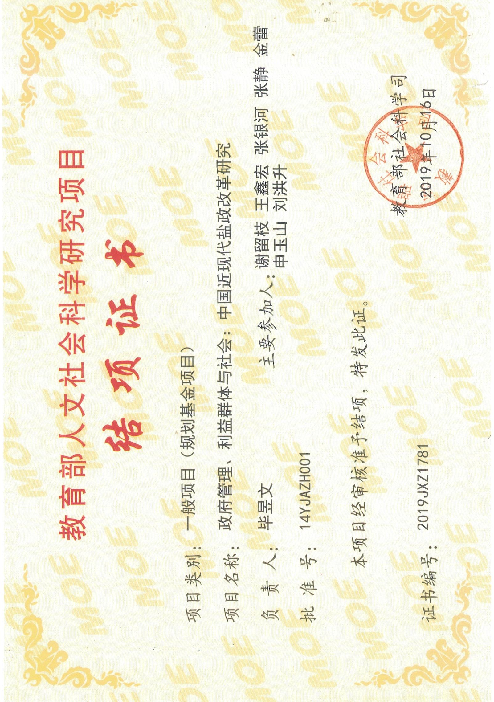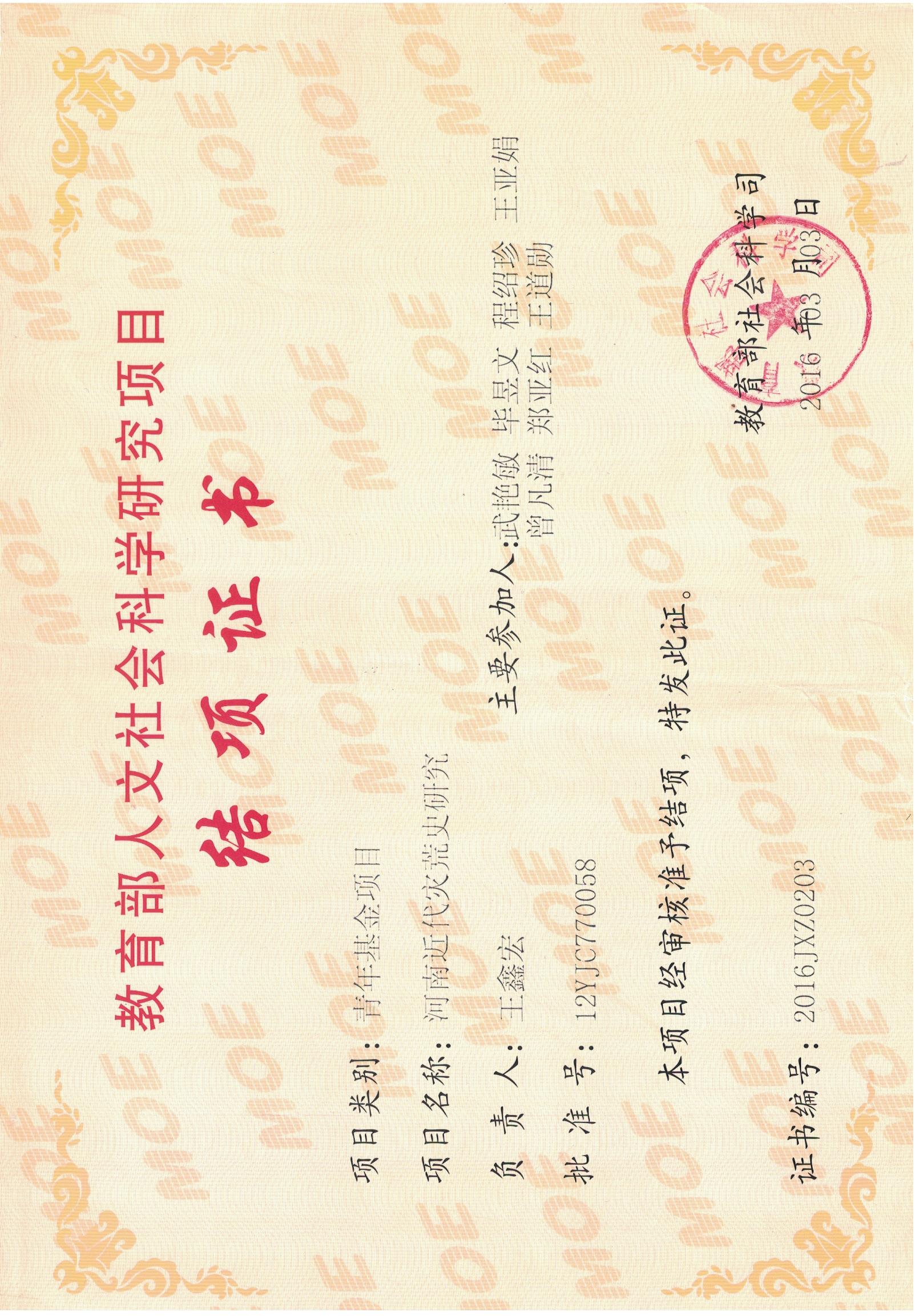 河南省高校人文社科奖特等奖,河南省教育厅,2020年8月。