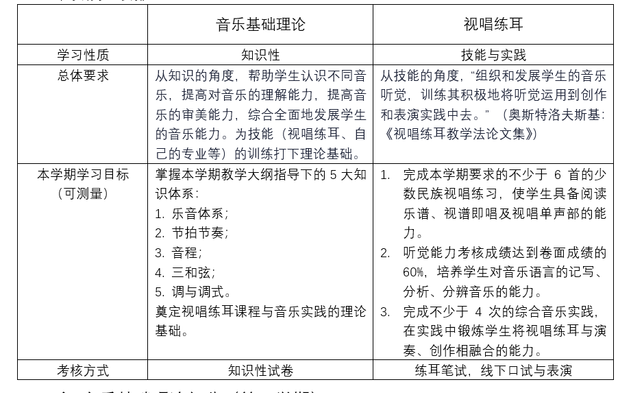 音乐基础理论和视唱练耳作为一门音乐类的专业基础必修课,面向音乐学院大一、大二年级的所有系、所有班级开设。教学内容是围绕音乐的基本要素展开的,通过理论知识的学习(音乐基础理论)和技术性训练(视唱练耳)相结合,提高学生的音乐听觉、视觉、动觉三位一体的能力,从而培养学生的音乐感知能力和音乐理解能力,最终使学生能够更好地演奏、分析、二度创作或创作音乐作品。
