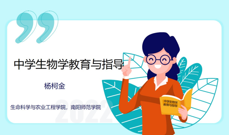 中学生物学课程与教学论是生物科学(师范类)专业的专业必修课程。 本课程是以教育学和心理学为理论基础来研究中学生物教学规律的教育科学,同时也是一门实践性很强的应用科学,又是多种科学交叉渗透形成的边缘科学和综合科学。课程教学内容包括中学生物学课程、学习和教学理论、生物学教学目标、教学方法、基本教学技能、备课与说课、教育评价、教育教学研究、教学基本功训练方法和教学案例分析等。 通过本课程的教学使学生了解中学生物教学规律、教学内容,选用正确的教学方法,初步具备生物学教学能力,为培养学生成为一名合格的中学生物教师打好基础。本课程在教学过程中应注意科学性和技能性相统一、系统性和重点性相结合。注重理论联系实际,注意讲授与研讨相结合、观摩与试讲相结合、理论与实践相结合。本课程还要养成尊师重教、爱护学生、热爱教育事业的工作作风,培养学生具有正确的价值取向和严谨的科学态度,热爱乡村教育事业,尊重科研伦理,培养强烈的爱国情怀和高尚的道德情操。