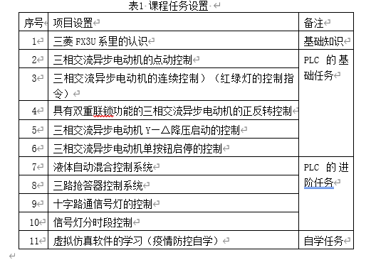 通过本课程的理论学习和项目训练,使学生了解可编程控制器的基本结构、工作原理及应用特点;熟悉软件环境下进行PLC程序的编写、调试、仿真以及下载的使用;掌握三菱或西门子可编程控制器的基本逻辑指令、步进指令和功能指令的应用;初步具备编写PLC较复杂程序的能力,为后续专业课程的学习奠定扎实的基础。