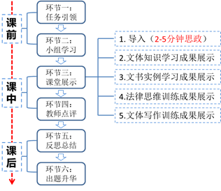本课程采取模块化、项目化、任务驱动进行教学。学生通过理论学习与实例分析、语言表达与修辞训练、法律思维与文体写作训练等内容,实现法律知识与写作体验的整合,强调记忆事实性知识、理解概念性知识、应用程序性知识,提升解决复杂问题的能力;通过个人自主学习、小组合作学习、全班互动学习,引导学生如何去阅读、如何去思考、如何去表达、如何以最优方式展示学习成果,鼓励学生大胆提问,大胆质疑,相互辩论,达到学会学习、学会合作、学会表达、学会处理纠纷的目的,提升高阶能力;通过反思总结,复盘学习过程,制作项目计划,自评与小组互评等,实现深度学习,提高元认知能力;通过整合学生自评、互评和教师观察评价、作业检查评价和期末考试等方式,实现对学生整个学习过程自觉性、积极性、协作性、创新性、纪律性和学习成效的考察,关注学生对法律文书的学习兴趣,重视教学严肃、生动、活泼,重视学生的思想、知识、能力、特长素质能在课堂教学中得到体现和发展。