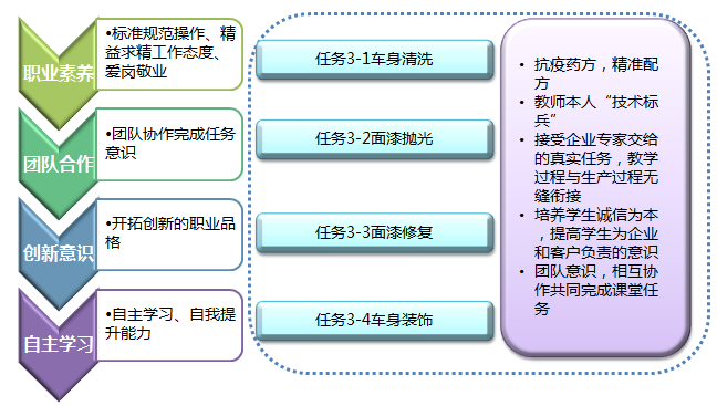 《汽车美容与装饰》是汽车车身技术专业面向汽车售后服务岗位群进行能力培养的一门专业核心课程,也是也是汽车检测与维修技术专业、电子技术专业拓展课程,以培养汽车美容、涂装修复高技能人才为目标,以强化岗位核心技能与全面提升职业素养为核心,以实际工作过程为主线,采用工作过程系统化的教学组织方法。