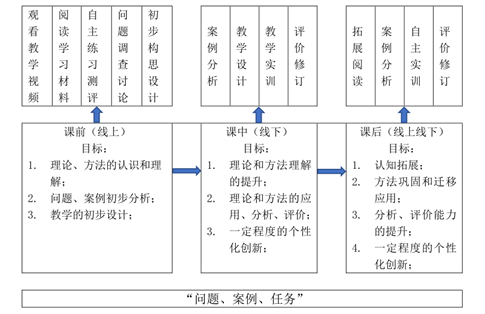 整个教学模式的设计从“应用型”英语师资人才培养目标出发,基于实际中小学英语教学中的“问题、案例、任务”构建课前、课中和课后三个教学环节(如图2)。