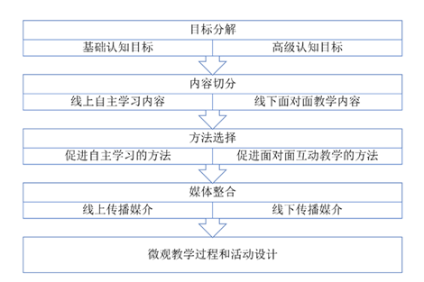 首先进行教学目标分层设置,再进行教学内容的切分,根据具体目标和内容选择并整合合适的教学方法和教学媒体,在此基础上,设计相应的微观教学过程和活动(如图1)。