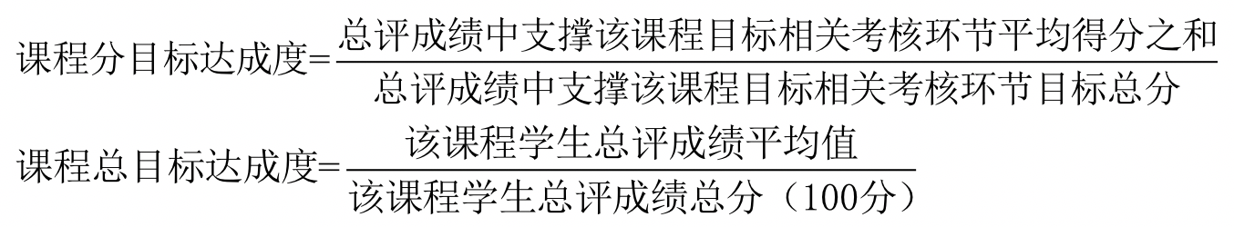 课程目标达成度评价包括课程分目标达成度评价和课程总目标达成度评价,具体计算方法如下: