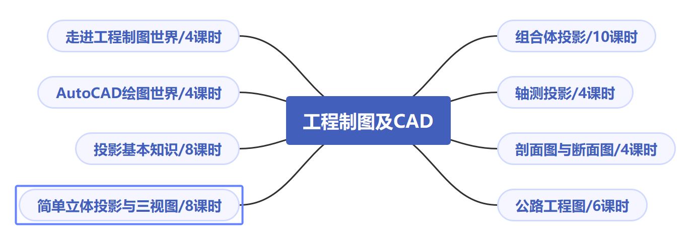 《工程制图及CAD》课程在高职铁道工程类专业群课程体系中,是专业基础课程之一,处于前导位置。是一门涉及专业职业能力培养和职业素养养成,与工程应用技术生产实践紧密结合的基础课程,是公共基础课程学习方法在专业课程的延伸与拓展,也是养成后续专业课程学习方法和职业能力培养的基础。 工程图纸是表达设计思想、指导生产和进行技术交流的技术性文件,因此,图样被誉为工程技术界的通用语言。本课程是培养学生对所学专业的情感及对专业兴趣的重要途径,也是相关专业工程技术人员必须熟练掌握的基本技能。在生产实践中,学会综合运用所学知识,可以正确、完整、清晰地理解与工程图纸绘制、识读等方面的信息。