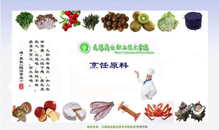 《烹饪原料》课程是“烹调工艺与营养”及相关专业的一门必修专业基础课程。本课程以理论教学为主,穿插各种课内外实训项目,让学生掌握典型烹饪原料的种类特征、产地产季、营养保健、品质检验、贮存保鲜等基本知识,能依据实物、图片等识别各种烹饪原料,能鉴别常用烹饪原料品质的优劣,具有通过图书馆、网络等途径,查找、整合烹饪原料知识的能力,为后续实践课程及未来烹饪实践打下坚实的物质基础。