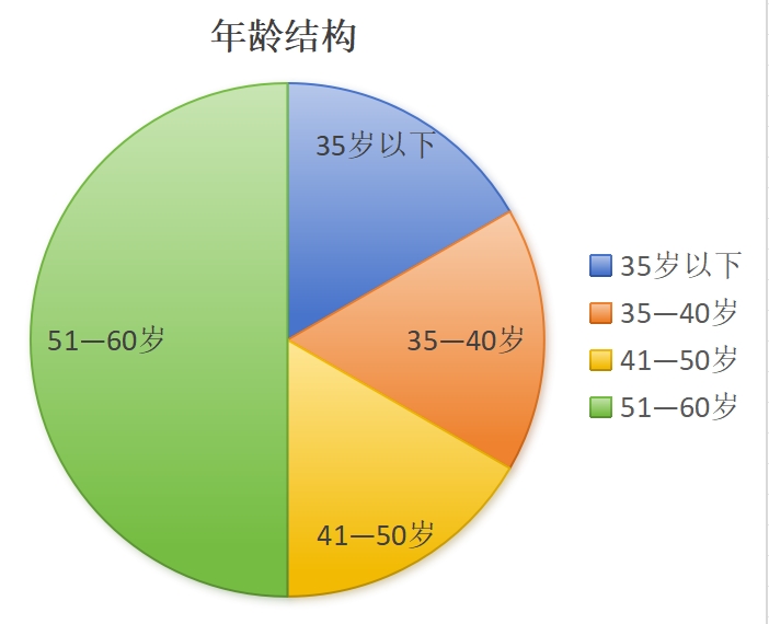 1、年龄结构:从年龄结构来看,目前本课程师资以中青年为主,35岁以下0人,35岁至40岁的1人,41岁至50岁的2人,50岁以上3人。是一支拥有大量新鲜血液,但同时也具有丰富教学经验的师资队伍。