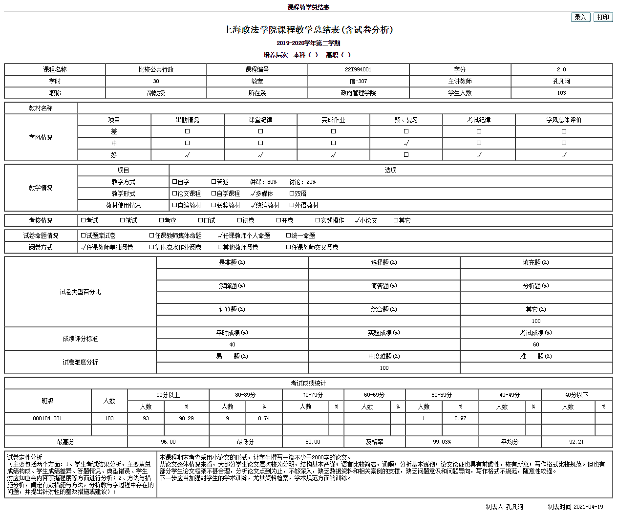 “比较公共行政”课程是对中外公共行政制度、理论体系和政府管理实践进行比较分析的课程,既包括对基本概念、基础理论的学理比较,也包括对中外公共行政体制改革实践的具体比较分析。其中既有规范性分析,也有实证性的经验研究。党的十八大以来,尤其党的十九大、二十大以来,中央提出建立中国特色社会主义行政体制目标,深入推进政企分开、政资分开、政事分开、政社分开,建设职能科学、结构优化、廉洁高效、人民满意的服务型政府的新要求,积极推动以职能转变为核心,深化“放管服”改革,推动政府职能向创造良好发展环境、提供优质公共服务、维护社会公平正义转变,推动有效市场和有为政府相结合,更好发挥政府作用。因此,在课程建设过程中,我们紧跟比较公共行政学科前沿动态,及时更新课程知识体系,将本学科学术研究发展的最新成果引入课程教学。譬如,将国家治理体系和治理能力现代化、国家监察体制改革、党和国家机构改革、政府治理现代化、政府权力清单制度、“放管服”改革、腐败治理与廉洁政府建设、法治政府建设等大量新的前沿热点问题引入课堂,使课程内容的学术性、前沿性和时代性凸显出来,提升课程的创新性、高阶性。