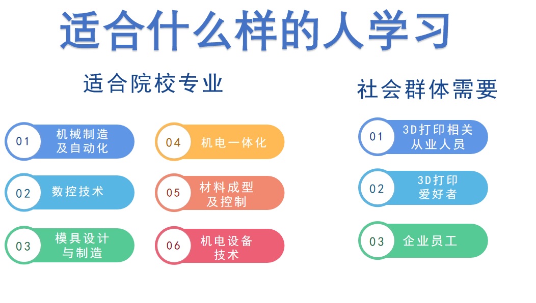 本课程是材料成型与控制技术专业的专业核心课程,72学时,4学分。前置课程《机械制图》、《机械制造基础》、《CAD/CAM技术》、《机械产品数字化逆向建模》,后置课程毕业设计、实习实训。专注于增材制造新型产业的科技前沿技术研究,服务新型工业化国家战略。