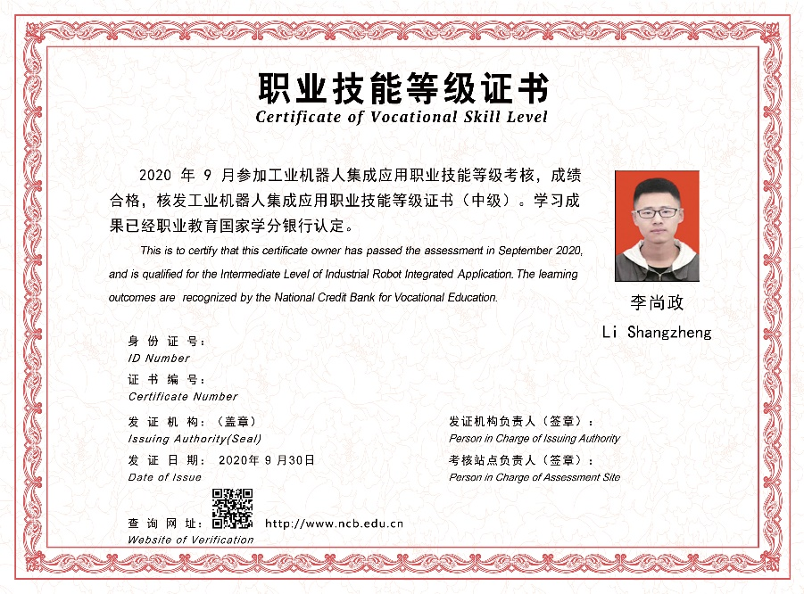 可以参加“1+X 证书”《工业机器人集成应用》(中级)职业资格证书鉴定认证。