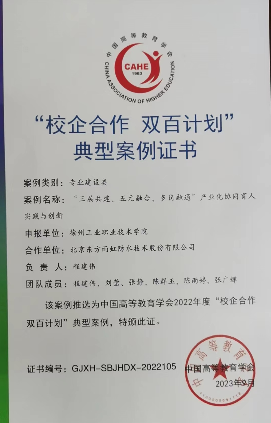 课程与江苏诚意集团、北京东方雨虹防水技术股份有限公司等多家大型企业合作,搭建了岗位育人新平台,构建了校企双元培养—新型学徒制样板;建设了装配式建筑构件生产职业技能培训基地;技能大师工作室为主体的产业学院协同育人创新与实践—入选国家产教融合案例;“三类共建、五元融合、多岗融通”产业化协同育人实践与创新入选教育部高教学会典型案例。实景体验式教学场课堂革命—突破课堂教学时空界限;工程实践教学改革创新项目—打造模块化实训课程新样板。